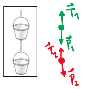 Tensión de las cuerdas que sujetan dos cubetas (7289)