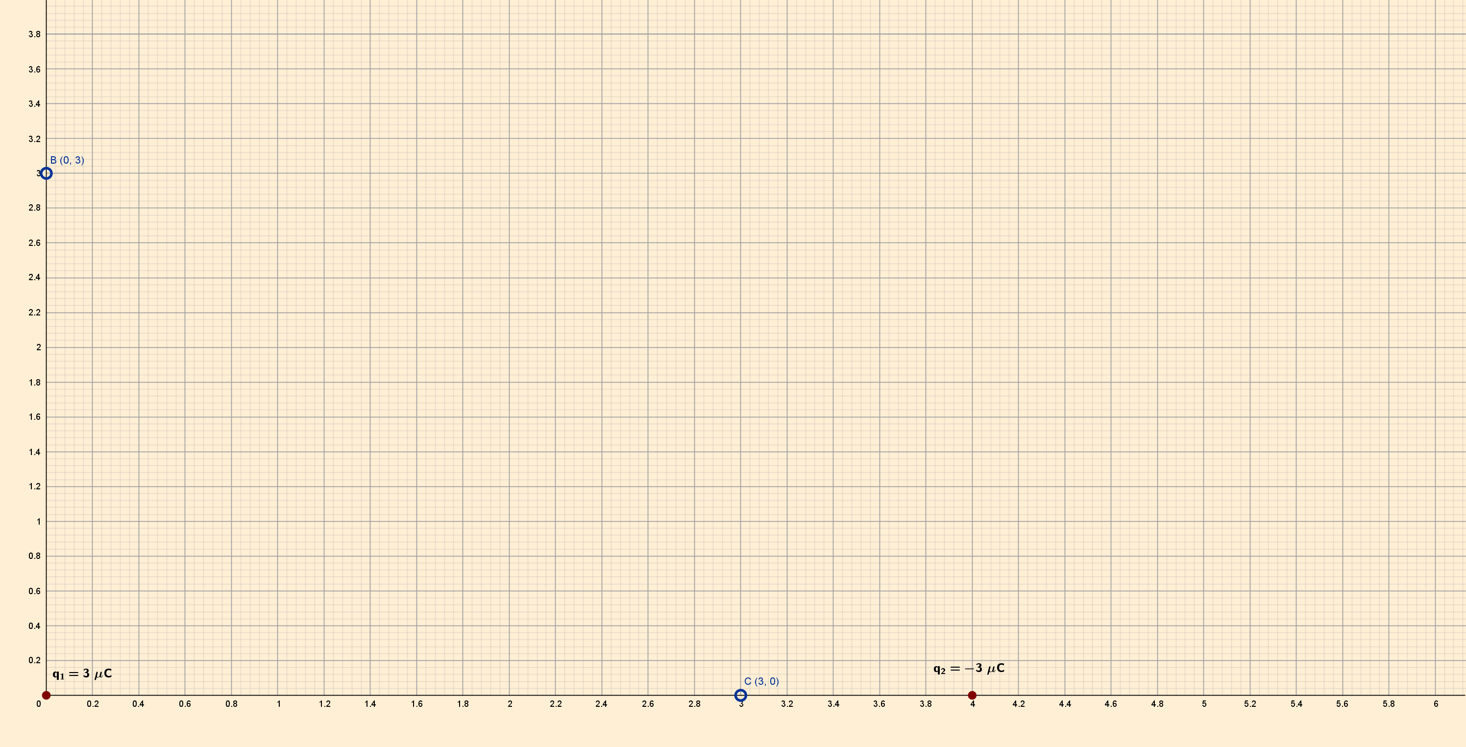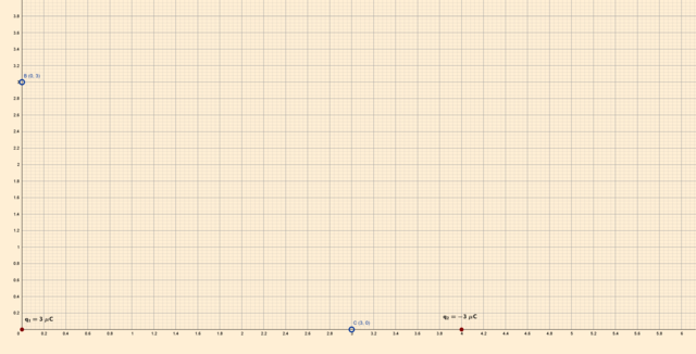 . Si las cargas están situadas en el vacío y las coordenadas se expresan en metros, determina el trabajo que realizan las fuerzas del campo para trasladar una carga