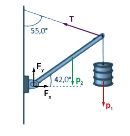 Una barra ingrávida esta suspendida sobre un pivote tal como muestra la figura. Si el cilindro que suspende en el extremo de la barra tiene un peso de 600 N: