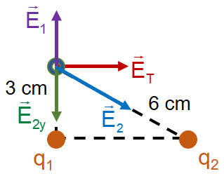 , tal como muestra la figura. En el vértice libre se ha representado el campo eléctrico total , cuyo valor es