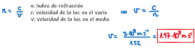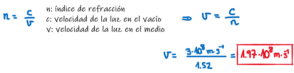 Velocidad de la luz en el vidrio crown (538) Sábado 27 de febrero de 2010, por F_y_Q | Refracción Velocidad propagación RESUELTO El índice de refracción del vidrio crown es 1.52. ¿Cuál es la velocidad de la luz en ese vidrio?
