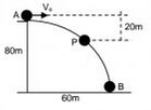 Calcula la velocidad de la partícula en el punto P. El cuerpo es lanzado horizontalmente desde el punto A y llega al punto B como se indica en la figura. (