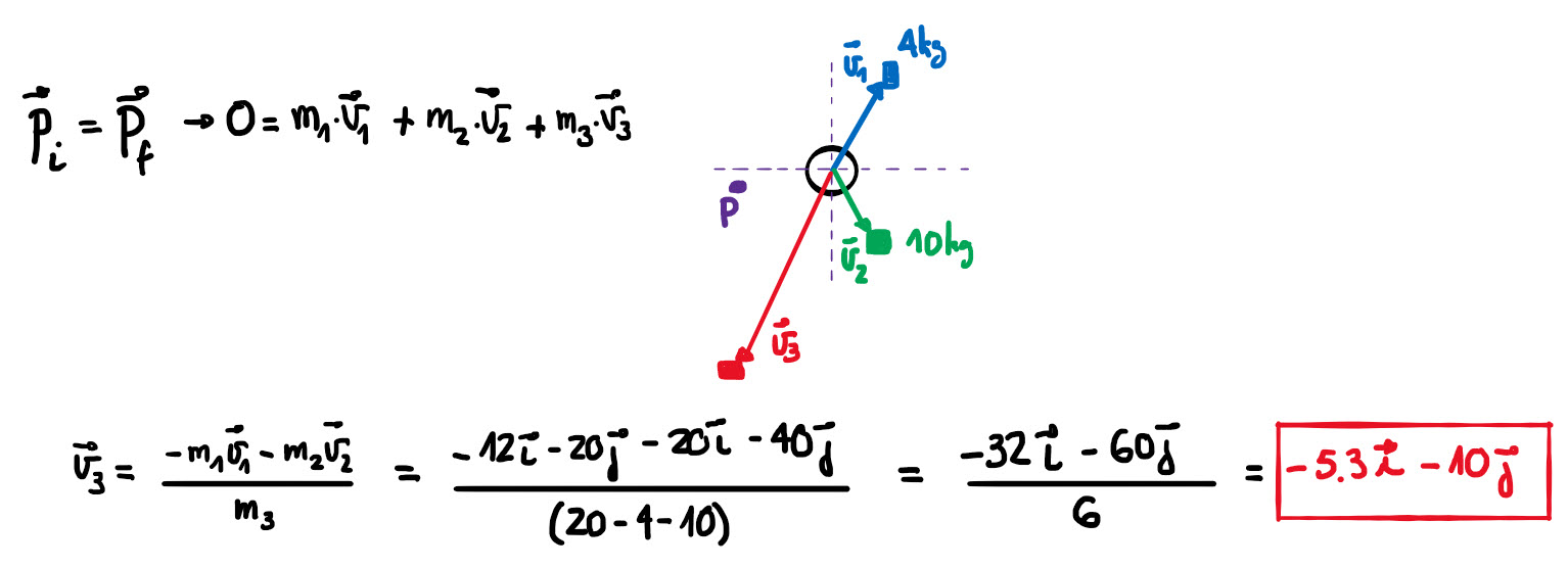 Velocidad del tercer fragmento de un explosivo que estalla (7298)