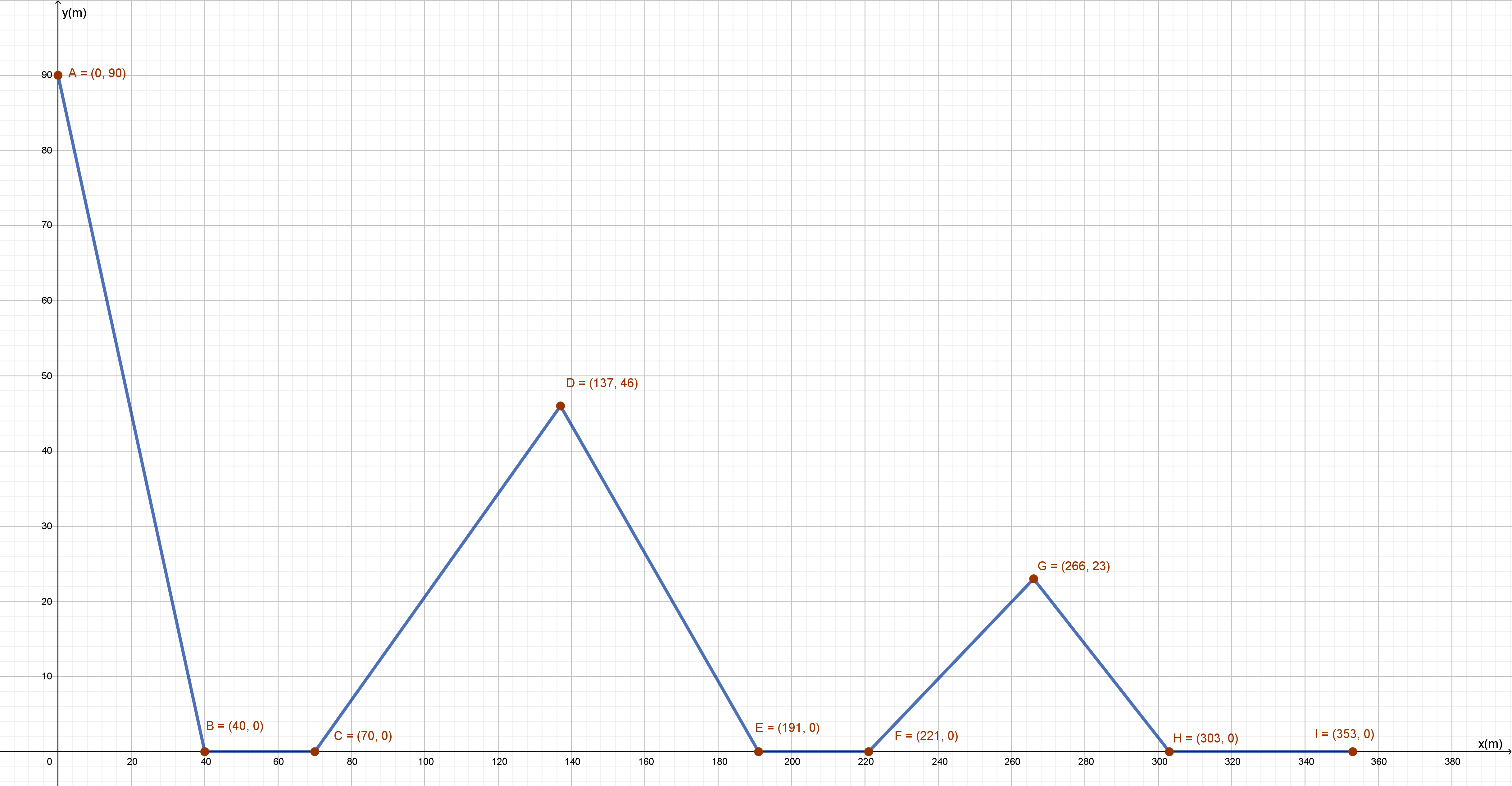 de la energía cinética con la que inició su segundo trazado horizontal se transforma en energía calórica y debido a la energía cinética que aún posee el carro, el carro inicia un segundo ascenso de 45 m donde el