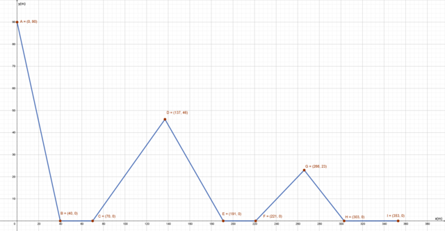 de la energía cinética se transforma en calor, llegando a la parte más alta de la tercera joroba. El carro comienza un tercer descenso de 37 m debido a su energía potencial durante el que transforma en calor el