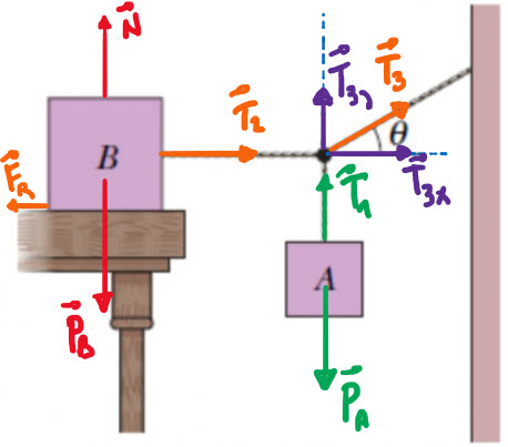 El bloque B en la pesa 711 N. El coeficiente de fricción estática entre el bloque B y la mesa es 0.25 y el ángulo es de . Suponiendo que la cuerda entre B y el nudo es horizontal, ¿cuál es el peso máximo del bloque A para el que el sistema estará en equilibrio?