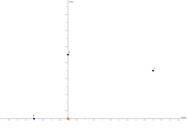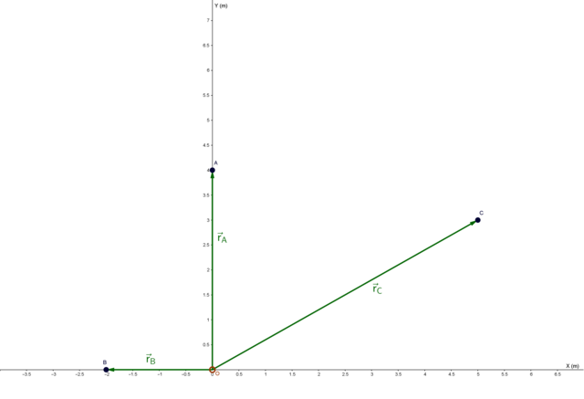 a) Representa gráficamente los puntos A(0,4), B(-2,0) y C(5,3) y dibuja los vectores posición, con respecto al origen, ,