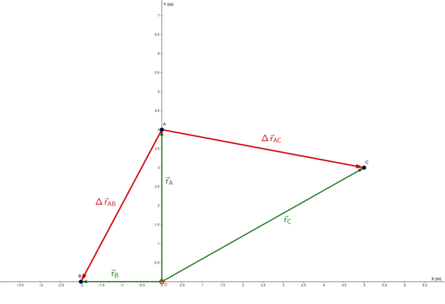 c) Calcula los vectores que describen el desplazamiento de A a B () y de A a C (