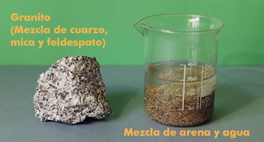 Heterogéneas: En este tipo de mezclas podemos distinguir fácilmente los componentes. Están en fases distintas y pueden ser separados usando métodos mecánicos de separación, que son un tipo de método físico. Observa estos ejemplos: