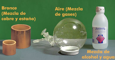 Homogéneas: En estas mezclas no se pueden distinguir los componentes de un vistazo y no pueden ser separados por métodos mecánicos, sino que son necesarios otro tipo de métodos físicos para hacer la separación. Las mezclas homogéneas se presentan en una única fase. Mira estos ejemplos:
