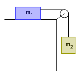 Sabiendo que la masa de 1 es el doble que la masa de 2 y que el coeficiente de rozamiento es 0,15, ¿con qué aceleración se mueve el sistema?