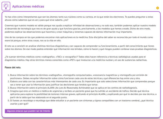 El reto final es una investigación que permite la aplicación de lo aprendido a ciertas técnicas radiológicas usadas en medicina.