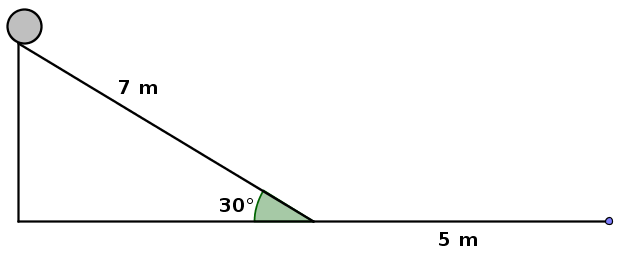 En el sistema de la figura, la fuerza de rozamiento en el plano inclinado es 1,43 N, mientras que el coeficiente de rozamiento en el tramo horizontal es de 0,10: