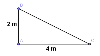 Tres masas de 3, 4 y 5 kg están situadas en los vértices A, B y C del triángulo, respectivamente. Calcula el momento de inercia respecto al vértice C.