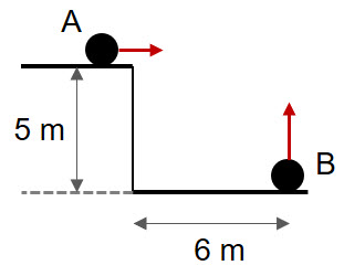 Determina la velocidad inicial vertical que debería imprimir a la esfera B para impactar con la esfera A, suponiendo que se lanza en el mismo instante en que la esfera A abandona la mesa. Considera que ![]()