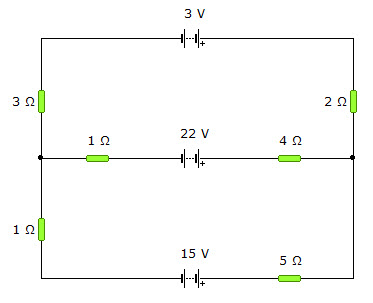 Determina las intensidades de corriente en cada rama en el circuito de la figura: