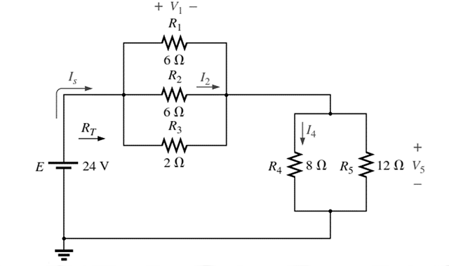 a) Determina la resistencia equivalente y la corriente de la fuente.