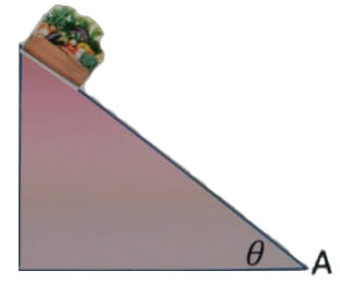 Una caja con frutas y verduras de 15 kg de masa es liberada desde el reposo en la parte superior de una rampa sin fricción de 3 m de longitud, con una inclinación