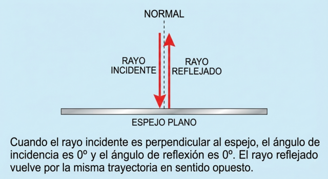 Reflexión de un rayo perpendicular a la superficie del espejo (546)