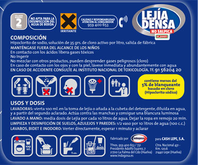 Observa la etiqueta de una lejía: